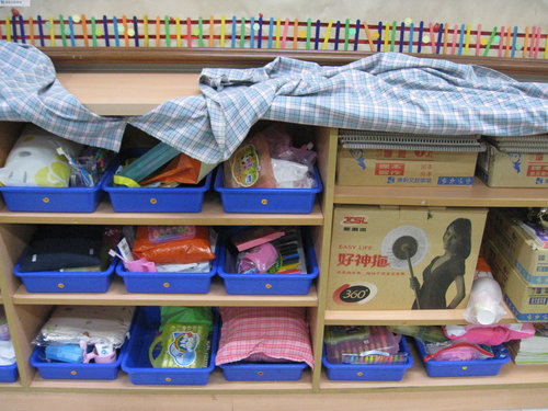 擺放個人物品在置物籃裡(寶貝們全都自己練習著做,而且做得真是棒極了!)