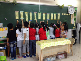 邊唱票邊看這群寶貝們很認真的記下每一筆劃